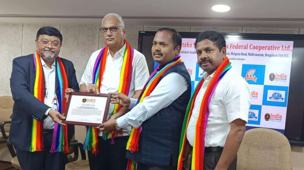 ಇಂಡಿಯಾ ಬುಕ್ ಆಫ್ ರೆಕಾರ್ಡ್‌ನ ತೀರ್ಪುಗಾರರು “ಕರ್ನಾಟಕ ರಾಜ್ಯ ಸೌಹಾರ್ದ ಸಂಯುಕ್ತ ಸಹಕಾರಿಯ ಸಹಕಾರಿ ಧ್ವಜಾರೋಹಣ ದಿನವು 1500ಕ್ಕೂ ಹೆಚ್ಚು ಸ್ಥಳಗಳಲ್ಲಿ ಸಹಕಾರಿ ಧ್ವಜವನ್ನು ಹಾರಿಸುವ ಮೂಲಕ ಬುಕ್ ಆಫ್ ರೆಕಾರ್ಡ್ಸ್ ಗೆ ಸೇರಿದೆ” ಎಂದು ಘೋಷಿಸಿ, ಸಂಯುಕ್ತ ಸಹಕಾರಿಯ ಅಧ್ಯಕ್ಷರಿಗೆ ದಾಖಲೆ ಪತ್ರ ಹಸ್ತಾಂತರಿಸಿದರು.