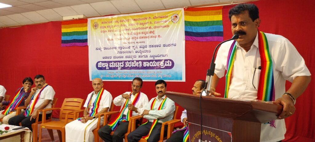 ಕರ್ನಾಟಕ ರಾಜ್ಯ ಸಹಕಾರ ಮಹಾಮಂಡಳ, ದ.ಕ. ಜಿಲ್ಲಾ ಸಹಕಾರ ಯೂನಿಯನ್, ದ.ಕ. ಜಿಲ್ಲಾ ಕೇಂದ್ರ ಸಹಕಾರಿ ಬ್ಯಾಂಕ್, ಸಹಕಾರ ಇಲಾಖೆ, ಪಂಜ ಪ್ರಾಥಮಿಕ ಕೃಷಿ ಪತ್ತಿನ ಸಹಕಾರಿ ಸಂಘ ಪಂಜ ಇವರ ಸಂಯುಕ್ತ ಆಶ್ರಯದಲ್ಲಿ ಸುಳ್ಯ ತಾಲೂಕಿನ ಪ್ರಾಥಮಿಕ ಕೃಷಿ ಪತ್ತಿನ ಸಹಕಾರ ಸಂಘಗಳ ನೂತನವಾಗಿ ಆಯ್ಕೆಯಾದ ಆಡಳಿತ ಮಂಡಳಿ ಸದಸ್ಯರು ಮತ್ತು ಸಿಬ್ಬಂದಿಗಳಿಗೆ ಜರುಗಿದ ಜಿಲ್ಲಾಮಟ್ಟದ ತರಬೇತಿ ಕಾರ್ಯಕ್ರಮದಲ್ಲಿ ಅಧ್ಯಕ್ಷತೆ ವಹಿಸಿ ಮಾತನಾಡಿದರು.