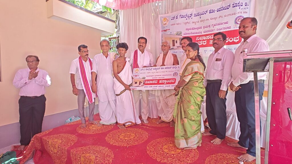ಕಿನ್ನಿಗೋಳಿ ಉಲ್ಲಂಜೆಯ ವೀಣಾ ಆಚಾರ್ಯ ಎಂಬುವವರಿಗೆ ಎಸ್.ಕೆ.ಗೋಲ್ಡ್ಸ್ಮಿತ್ ಇಂಡಸ್ಟ್ರಿಯಲ್ ಕೋ ಆಪರೇಟಿವ್ ಸೊಸೈಟಿಯ ವಜ್ರಮಹೋತ್ಸವ ಹಮ್ಮಿಕೊಂಡ ಗೃಹ ನಿರ್ಮಾಣ ಯೋಜನೆಯಡಿಯಲ್ಲಿ ನಿರ್ಮಾಣವಾದ ನೂತನ ಮನೆಯನ್ನು ಮನೆಯವರಿಗೆ ಸ್ತಾಂತರಿಸಿ ಮಾತನಾಡಿದರು.