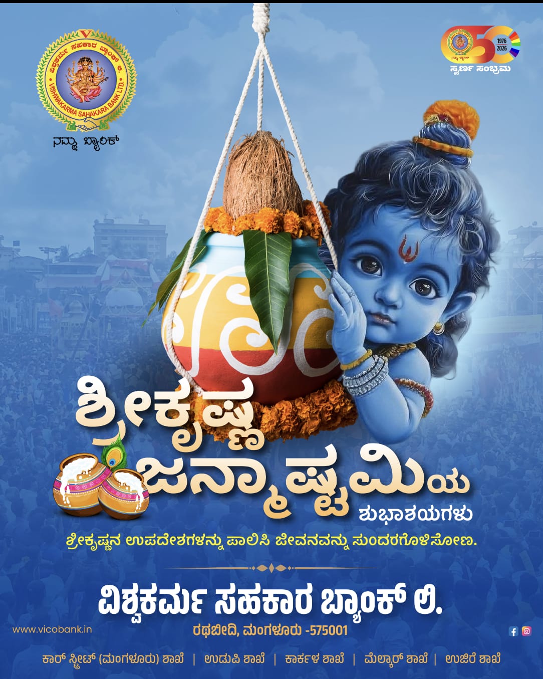 ಶ್ರೀ ವಿನಾಯಕ ಕಾಳಿಕಾಂಬ ವಿನಾಯಕ ದೇವಸ್ಥಾನದ ಆಡಳಿತಾಧಿಕಾರಿಯಾದ ಶ್ರೀ ಉಮೇಶ್ ಆಚಾರ್ಯ ಪಾಂಡೇಶ್ವರ ಧ್ವಜಾರೋಹಣವನ್ನು ನೆರವೇರಿಸಿದರು. ಬ್ಯಾಂಕಿನ ಗ್ರಾಹಕರಾದ ಶ್ರೀ ರಾಜೇಶ್ ಬಾಳಿಗಾ ಶ್ರೀ ರಾಜೇಂದ್ರ ಪೇಜಾವರ, ಶ್ರೀ ಮ. ವೆಂಕಟೇಶ್ ಆಚಾರ್ಯ, ಶ್ರೀ ಕಾಳಿಕಾ ಸೇವಾ ಸಮಿತಿಯ ಅಧ್ಯಕ್ಷರಾದ ಶ್ರೀ ಜಗದೀಶ್ ಸಿದ್ಧಕಟ್ಟೆ, ನಿರ್ದೇಶಕರಾದ ಶ್ರೀ ಹರಿಪ್ರಸಾದ್, ಶ್ರೀ ಭರತ್ ನಿಡ್ಪಳ್ಳಿ, ಶ್ರೀಮತಿ ರೇಷ್ಮಾ ಚಂದನ್, ವ್ಯವಸ್ಥಾಪಕ ನಿರ್ದೇಶಕರಾದ ಶ್ರೀ ವಸಂತ ಅಡ್ಯಂತಾಯ ಮುಂತಾದವರು ಭಾಗವಹಿಸಿದ್ದರು.