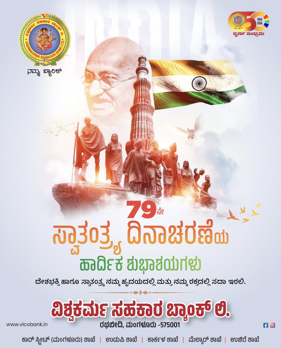 ಅವರು ವಿಶ್ವಕರ್ಮ ಸಹಕಾರ ಬ್ಯಾಂಕ್ ಲಿ. ಮಂಗಳೂರು ಇದರ ಪ್ರಧಾನ ಕಚೇರಿಯಲ್ಲಿ ನಡೆದ ದೇಶದ 79ನೇ ಸ್ವಾತಂತ್ರ್ಯ ದಿನಾಚರಣೆಯ ಕಾರ್ಯಕ್ರಮವನ್ನು ಉದ್ದೇಶಿಸಿ ಮಾತನಾಡುತ್ತಿದ್ದರು.