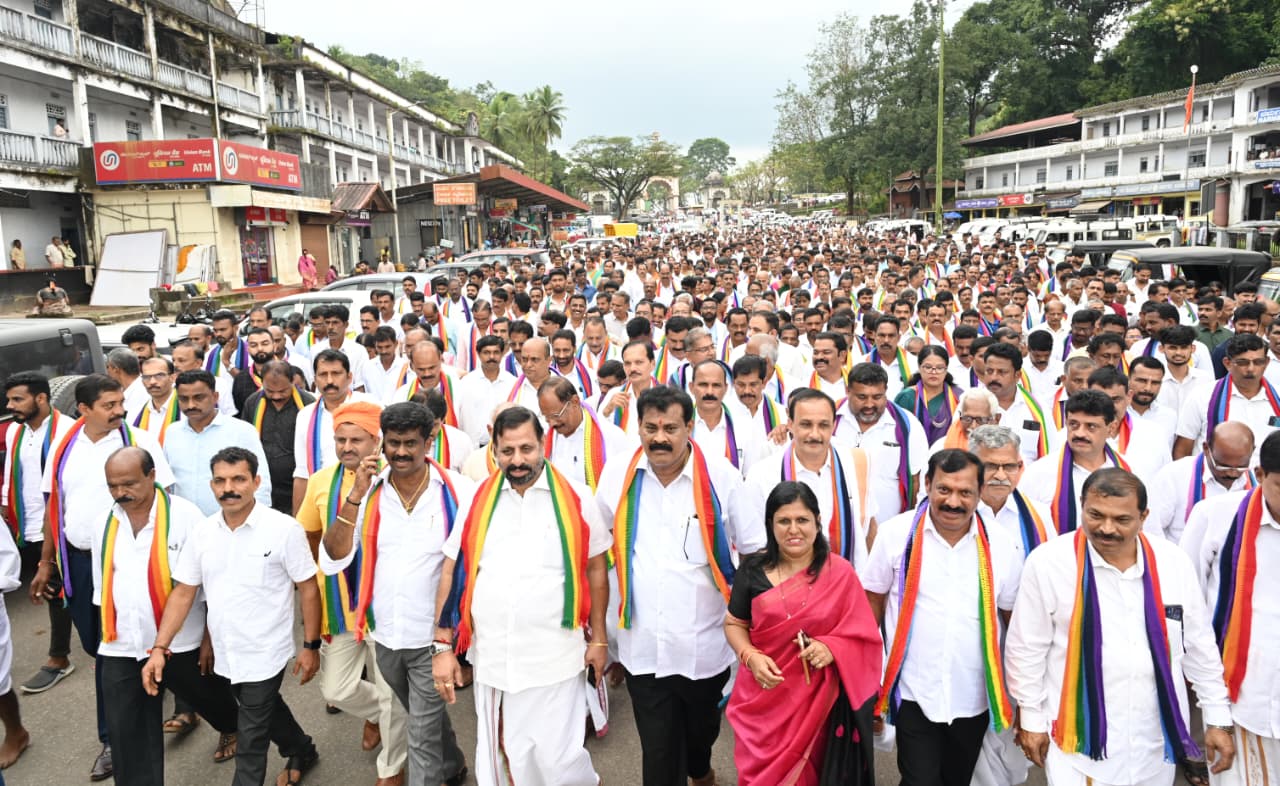 ಬೆಳ್ತಂಗಡಿ: ಶ್ರೀ ಕ್ಷೇತ್ರ ಧರ್ಮಸ್ಥಳ ವಿರುದ್ಧ ನಡೆಯುತ್ತಿರುವ ಹಲವು ರೀತಿಯ ಷಡ್ಯಂತ್ರಗಳನ್ನು ವಿರೋಧಿಸಿ ಭಾನುವಾರ ದಕ್ಷಿಣ ಕನ್ನಡ ಮತ್ತು ಉಡುಪಿ ಜಿಲ್ಲೆಯ ಸಮಸ್ತ ಸಹಕಾರಿಗಳು ಶ್ರೀ ಕ್ಷೇತ್ರ ಧರ್ಮಸ್ಥಳಕ್ಕೆ ಧರ್ಮಜಾಗೃತಿ ಯಾತ್ರೆ ಕೈಗೊಂಡು ಡಾ.ಡಿ.ವೀರೇಂದ್ರ ಹೆಗ್ಗಡೆಯವರಿಗೆ ಬೆಂಬಲ ಸೂಚಿಸಿ ಕ್ಷೇತ್ರದ ಪಾವಿತ್ರ್ಯಕ್ಕೆ ಧಕ್ಕೆಯಾದರೆ ಸಹಿಸುವುದಿಲ್ಲ ಎಂಬ ಸಂದೇಶ ಸಾರಿದರು.