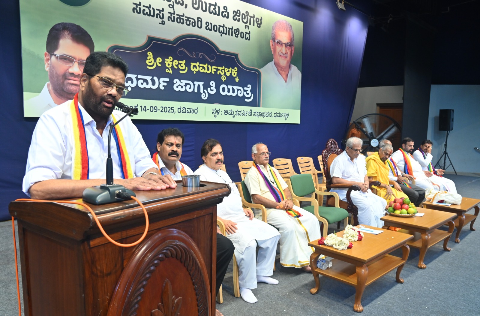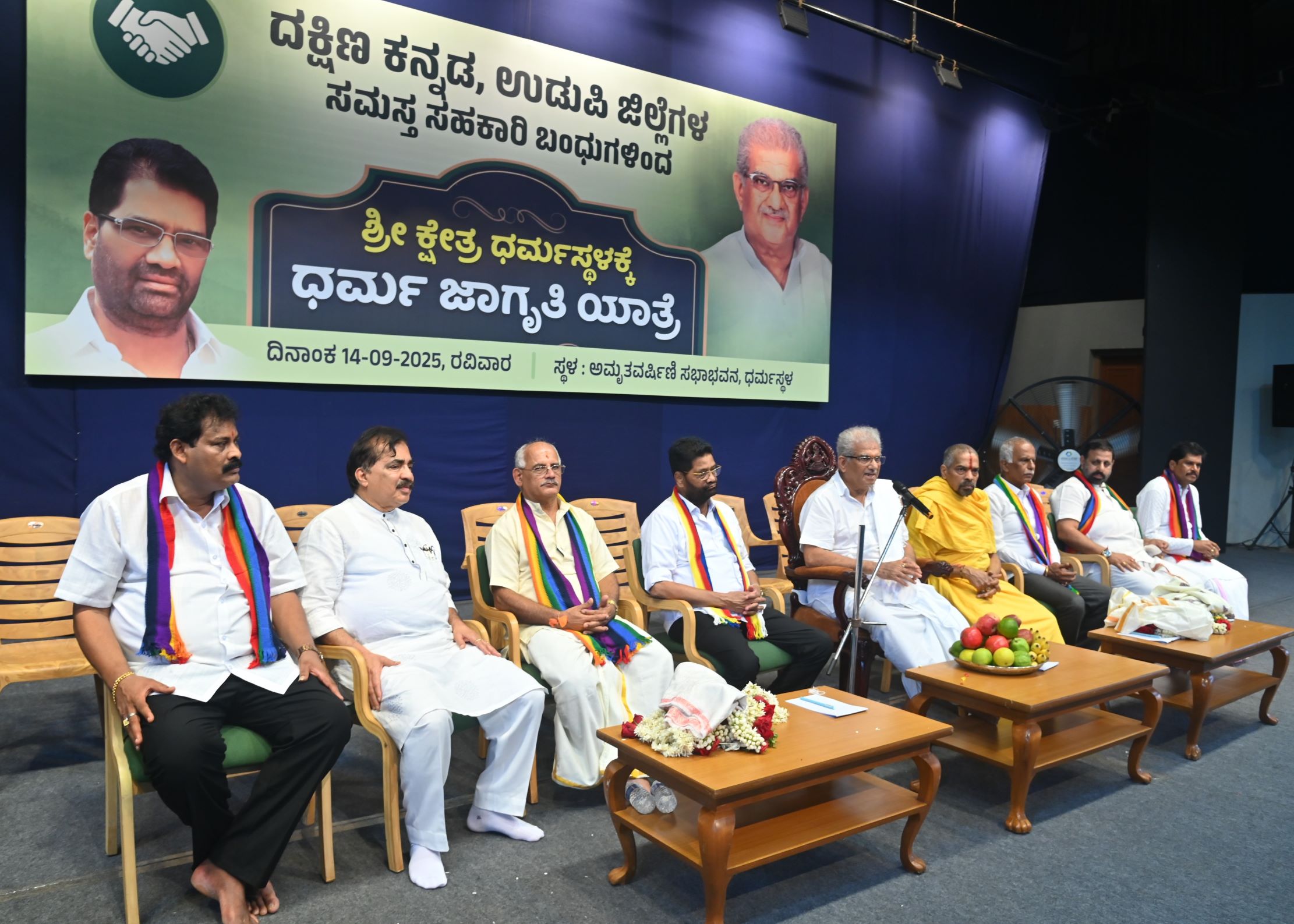 ಶ್ರೀ ಕ್ಷೇತ್ರ ಧರ್ಮಸ್ಥಳಕ್ಕೆ ದ.ಕ. ಜಿಲ್ಲಾ ಸಹಕಾರಿ ಯೂನಿಯನ್ ನೇತೃತ್ವದಲ್ಲಿ ಸಹಕಾರಿಗಳು ಜೊತೆ ಸೇರಿ ಹಮ್ಮಿಕೊಂಡ ಧರ್ಮ ಜಾಗೃತಿ ಯಾತ್ರೆಯು ಆಯಾ ಕೇಂದ್ರಗಳಿಂದ ಸಾವಿರಾರು ವಾಹನಗಳ ಮೂಲಕ ಮಧ್ಯಾಹ್ನ 12 ಗಂಟೆಗೆ ಉಜಿರೆ ತಲುಪಿತು. ಅಲ್ಲಿಂದ ದಕ್ಷಿಣ ಕನ್ನಡ ಜಿಲ್ಲಾ ಕೇಂದ್ರ ಸಹಕಾರಿ ಬ್ಯಾಂಕ್ ಅಧ್ಯಕ್ಷರಾದ ಸಹಕಾರ ರತ್ನ ಡಾ.ಎಂ.ಎನ್ ರಾಜೇಂದ್ರ ಕುಮಾರ್ ಧರ್ಮ ಜಾಗೃತಿ ಯಾತ್ರೆ ಮೆರವಣಿಗೆಗೆ ಹಸಿರು ನಿಶಾನೆ ತೋರಿಸಿದರು. ಧರ್ಮಸ್ಥಳದ ಬಗ್ಗೆ ನಡೆಯುತ್ತಿರುವ ಅಪಪ್ರಚಾರ, ಷಡ್ಯಂತ್ರಗಳ ವಿರುದ್ಧ ಸಂದೇಶ ನೀಡಲು, ಧರ್ಮ ಸಂರಕ್ಷಣೆಗಾಗಿ ತಾವು ಬದ್ಧ ಎಂದು ಸಹಕಾರಿಗಳು ಒಕ್ಕೊರಲ ಉದ್ಘೋಷ ಹಾಕಿದರು.