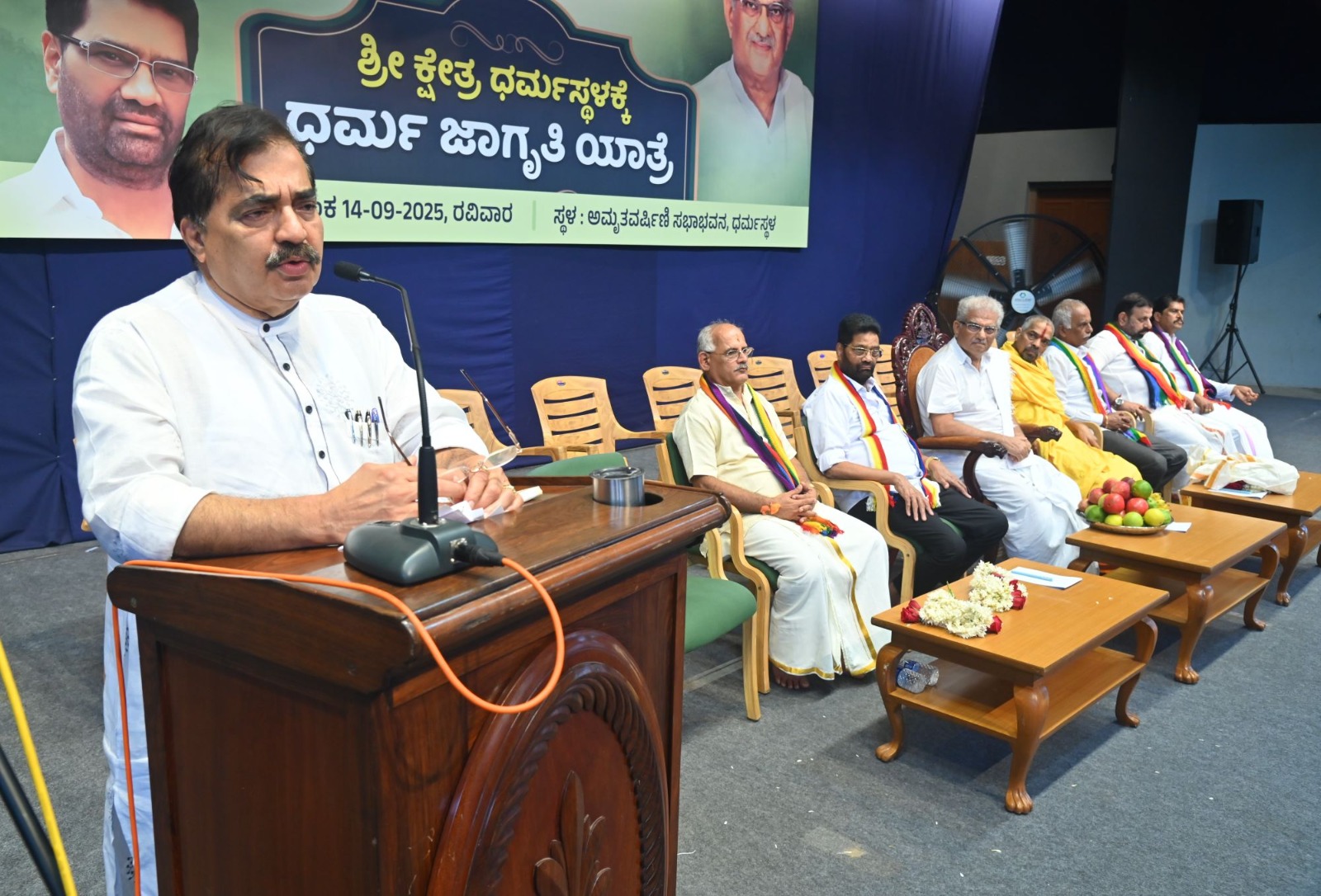 ಮೆರವಣಿಗೆ ಸಮಾಪನಗೊಂಡ ಬಳಿಕ ಕ್ಷೇತ್ರದ ಅಮೃತವರ್ಷಿಣಿ ಸಭಾಂಗಣದಲ್ಲಿ ನಡೆದ ಧರ್ಮಜಾಗೃತಿ ಸಮಾವೇಶದಲ್ಲಿ ಡಾ.ಎಂ.ಎನ್.ರಾಜೇಂದ್ರ ಕುಮಾರ್ ಮಾತನಾಡಿ, ಶ್ರೀ ಕ್ಷೇತ್ರ ಧರ್ಮಸ್ಥಳ ಎಂಬುದು ಈ ನಾಡಿಗಷ್ಟೇ ಅಲ್ಲ, ರಾಜ್ಯ, ದೇಶ, ವಿದೇಶಗಳಲ್ಲೂ ಪವಿತ್ರ ಕ್ಷೇತ್ರವೆಂದೇ ಹೆಸರು ಪಡೆದಿದೆ. ಧರ್ಮಸ್ಥಳದ ಬಗ್ಗೆ ನಡೆಯುತ್ತಿರುವ ಅಪಪ್ರಚಾರ ಹಾಗೂ ವ್ಯಾಪಕ ಸುಳ್ಳು ವದಂತಿಯನ್ನು ನಾವು ಖಂಡಿಸುತ್ತೇವೆ. ಜಾತಿ-ಮತ, ಪಕ್ಷಭೇದ ಮರೆತು ಸರ್ವ ಸಹಕಾರಿಗಳೂ ಧರ್ಮಾಧಿಕಾರಿ ಡಾ.ಡಿ.ವೀರೇಂದ್ರ ಹೆಗ್ಗಡೆಯವರ ಸಂಪೂರ್ಣ ಬೆಂಬಲಕ್ಕೆ ಇದ್ದೇವೆ. ಸಹಕಾರಿಗಳು ಧರ್ಮಸ್ಥಳದ ಪಾವಿತ್ರ್ಯ ರಕ್ಷಣೆಗೆ ಸದಾ ಸಿದ್ಧರೂ, ಬದ್ಧರೂ ಆಗಿದ್ದು, ಧರ್ಮಸ್ಥಳದ ಜೊತೆ ಸದಾ ಇರುತ್ತೇವೆ ಎಂದು ಹೇಳಿದರು.