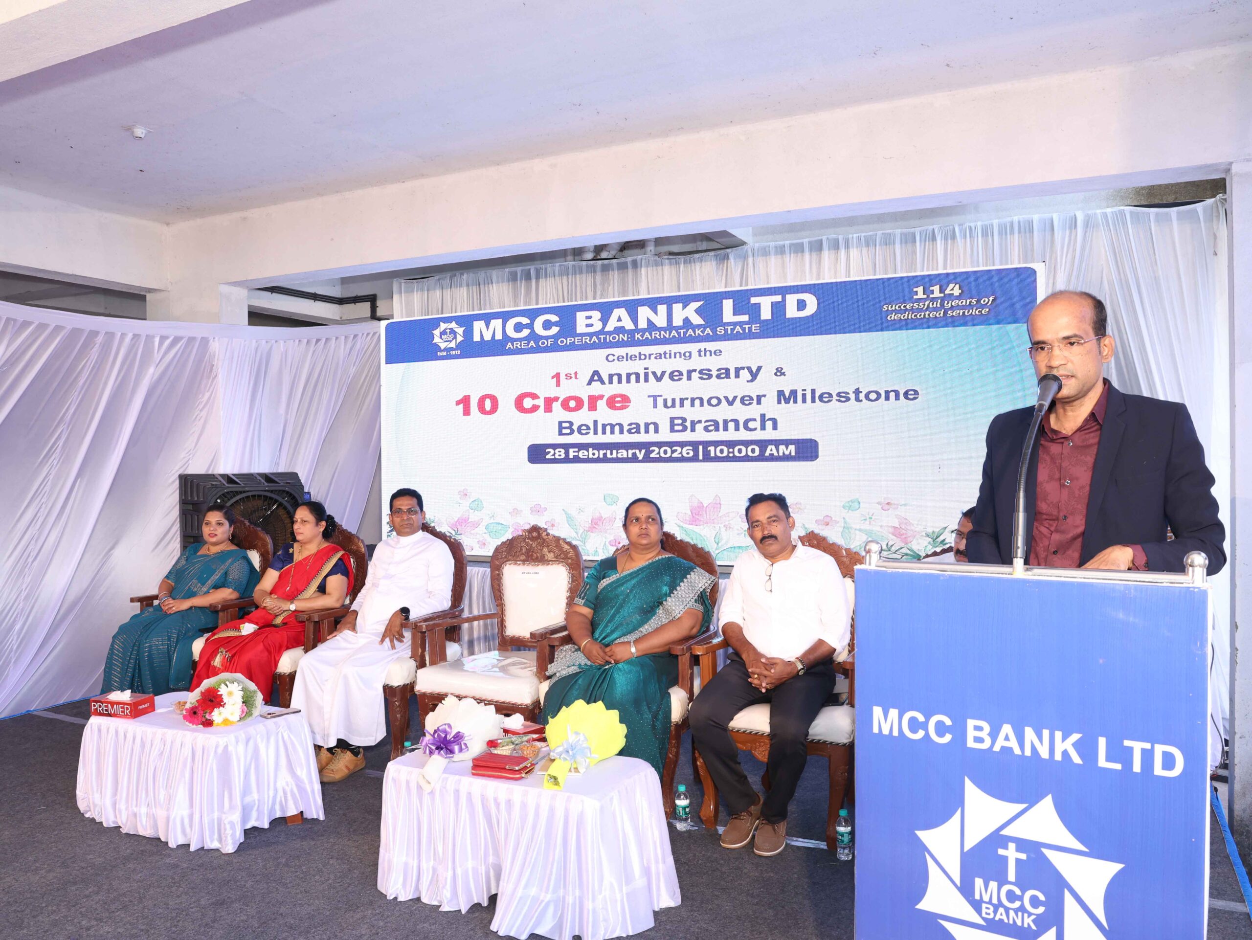 ಕಾರ್ಯಕ್ರಮದ ಅಧ್ಯಕ್ಷತೆ ವಹಿಸಿದ್ದ ಎಂಸಿಸಿ ಬ್ಯಾಂಕಿನ ಅಧ್ಯಕ್ಷರಾದ ಸಹಕಾರ ರತ್ನ ಅನಿಲ್ ಲೋಬೋ ಬೆಳ್ಮಣ್ ಶಾಖೆಯ ಆರಂಭದಿಂದಲೂ ಬ್ಯಾಂಕಿನ ಮೇಲೆ ಗ್ರಾಹಕರು ತೋರಿಸಿದ ವಿಶ್ವಾಸ, ನಂಬಿಕೆ ಮತ್ತು ಬೆಂಬಲವನ್ನು ಗೌರವಿಸಿ ಸ್ಥಾಪಕ ಗ್ರಾಹಕರನ್ನು ಸನ್ಮಾನಿಸಿ ಮಾತನಾಡಿ, ಮೊದಲ ವರ್ಷದೊಳಗೆ ಸಾಧಿಸಲಾದ ರೂ.10 ಕೋಟಿ ಮೈಲಿಗಲ್ಲು ಸಾಮೂಹಿಕ ಪ್ರಯತ್ನ, ದೂರದೃಷ್ಟಿಯ ಯೋಜನೆ ಮತ್ತು ಗ್ರಾಹಕರ ಅಚಲ ನಂಬಿಕೆಯ ಫಲಿತಾಂಶವಾಗಿದೆ. ಗ್ರಾಹಕರಿಗೆ ತ್ವರಿತ ಮತ್ತು ಪರಿಣಾಮಕಾರಿ ಸೇವೆಯನ್ನು ಒದಗಿಸುವುದು ಬ್ಯಾಂಕಿನ ಪ್ರಾಥಮಿಕ ಉದ್ದೇಶ ಎಂದು ಹೇಳಿದರು. ಗ್ರಾಹಕರು ಬ್ಯಾಂಕಿನತ್ತ ಸಂಪೂರ್ಣ ನಂಬಿಕೆಯಿಂದ ಬರುವಂತಾಗಬೇಕು, ಇದಕ್ಕೆ ಪ್ರತಿಯಾಗಿ ಬ್ಯಾಂಕ್ ಅವರ ನಂಬಿಕೆಗೆ ತಕ್ಕ ಸೇವೆ ನೀಡಬೇಕು. ಅವರ ಅಗತ್ಯಗಳನ್ನು ಅರ್ಥ ಮಾಡಿಕೊಂಡು, ಸಮಸ್ಯೆಗಳನ್ನು ಪರಿಹರಿಸಿ, ಸಂಪೂರ್ಣ ತೃಪ್ತಿಯನ್ನು ಖಚಿತಪಡಿಸಿಕೊಳ್ಳುವ ವಿಶ್ವಾಸಾರ್ಹ ಸೇವೆಯನ್ನು ಒದಗಿಸಬೇಕು. ಗ್ರಾಹಕರ ಬಲವಾದ ಬೆಂಬಲ ಮತ್ತು ನಂಬಿಕೆಯಿಂದ ಬೆಳ್ಮಣ್ ಶಾಖೆ ಹೊಸ ಮೈಲಿಗಲ್ಲು ಸಾಧಿಸಲು ಸಾಧ್ಯವಾಯಿತು. ಡಿಸೆಂಬರ್ ತಿಂಗಳಲ್ಲೇ ಶಾಖೆಯು ರೂ.10 ಕೋಟಿ ಗಡಿ ತಲುಪಿತ್ತು ಮತ್ತು ಈಗ ರೂ.12 ಕೋಟಿ ಮೈಲಿಗಲ್ಲು ದಾಟಿದೆ. ಈ ಸಾಧನೆಗಾಗಿ ಬೆಳ್ಮಣ್ ಶಾಖೆಯ ಎಲ್ಲಾ ಗ್ರಾಹಕರನ್ನು ಅಭಿನಂದನೀಯ. ಶಾಖೆಯ ಗ್ರಾಹಕರು ಬ್ಯಾಂಕಿನ ನಿಜವಾದ ಬ್ರಾಂಡ್ ರಾಯಭಾರಿಗಳು ಎಂದು ಬಣ್ಣಿಸಿದರು.
