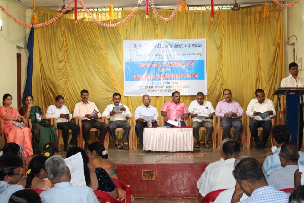 ಮಂಗಳೂರು: ಶ್ರೀ ಮಂಗಳಾಜ್ಯೋತಿ ವಿವಿಧೋದ್ದೇಶ ಸಹಕಾರಿ ಸಂಘ ನಿಯಮಿತ, ಬಿಜೈ, ಮಂಗಳೂರು ಇದರ 29ನೇ ವಾರ್ಷಿಕ ಮಹಾಸಭೆ ಹಾಗೂ 2023-24 ನೇ ಸಾಲಿನ ವಾರ್ಷಿಕ ವರದಿ ಮಂಡನೆ ಸಂಘದ ಅಧ್ಯಕ್ಷ ರಾಜೇಂದ್ರ ಕುಮಾರ್ ಅಧ್ಯಕ್ಷತೆಯಲ್ಲಿ ಭಾನುವಾರ ಮಂಗಳೂರು ಪೊಲೀಸ್ ಲೈನ್ನ “ನಾಸಿಕ್ ಬಿ.ಹೆಚ್. ಬಂಗೇರ ಸಭಾಭವನ”ದಲ್ಲಿ ನಡೆಯಿತು.