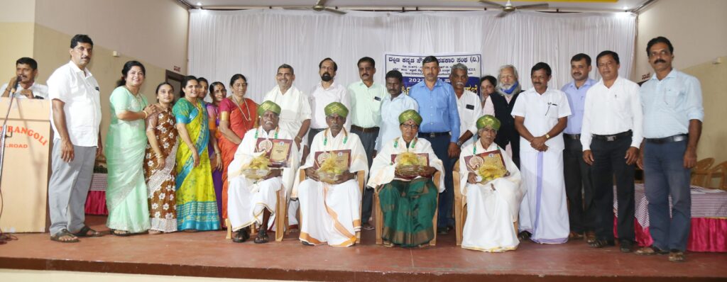 ಸಾಧಕ ರೈತರಾದ ಭತ್ತದ ಬೇಸಾಯವನ್ನು ಕೋಣ ಸಾಕಿ ಅದರಿಂದಲೇ ಉಳುಮೆ ಮಾಡುತ್ತಿರುವ ಬಂಟ್ವಾಳದ ಕೊಯಿಲ ಗ್ರಾಮದ ಹಾಂತ್ಲಾಜೆ ನಿವಾಸಿ ಸದಾಶಿವ ಶೆಟ್ಟಿಗಾರ್, ಭತ್ತದ ಬೇಸಾಯಕ್ಕಾಗಿ ತೋಡಿಗೆ ಕಿಂಡಿ ಕಟ್ಟ ರಚಿಸಿ ಎರಡು ಬೆಳೆ ಭತ್ತ ಬೆಳೆಯುತ್ತಿರುವ ಗೌರಿ ಬಡಕಬೈಲು ಕರಿಯಂಗಳ, ಸಾವಯವದಲ್ಲಿ ಭತ್ತದ ಬೆಳೆ ಬೆಳೆಯುವ ರೈತ ಗಂಗಾಧರ ಸಪಲ್ಯ ಬರ್ಕೆ ಗುರುಪುರ, ಭತ್ತ, ತರಕಾರಿ ಮಿಶ್ರ ಕೃಷಿಕ ರಾಜಾರಾಮ್ ಕೋಟ್ಯಾನ್ ಅವರನ್ನು ಸನ್ಮಾನಿಸಲಾಯಿತು. ಬಂಟ್ವಾಳ ತಾಲೂಕಿನ ಆಯ್ದ 20 ಗ್ರಾಮಗಳಲ್ಲಿ ಮಣ್ಣು ನೀರು ಸಂರಕ್ಷಣೆ ಯೋಜನೆಯನ್ನು ಯಶಸ್ವಿಯಾಗಿ ಅನುಷ್ಠಾನಗೊಳಿಸಿದ ದಿಶಾ ಟ್ರಸ್ಟ್ ಕೈಕಂಬ ಸಂಸ್ಥೆ ಹಾಗೂ ಅದರ ಸಿಬ್ಬಂದಿ ವರ್ಗದವರಿಗೆ ಗೌರವ ಸ್ಮರಣಿಕೆ ನೀಡಿ ಅಭಿನಂದಿಸಲಾಯಿತು.