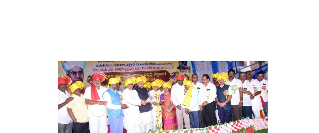 ಹಿರೇಕೆರೂರು ತಾಲೂಕು ವಿದ್ಯಾವರ್ಧಕ ಸೌಹಾರ್ದ ಸಹಕಾರಿ ಸಂಘದ ಆಶ್ರಯದಲ್ಲಿ ಸಹಕಾರಿ ವಿದ್ಯಾಸಂಸ್ಥೆ ಹಾಗೂ ಶಿಕ್ಷಣ ಇಲಾಖೆ ಸಹಯೋಗದಲ್ಲಿ ಇತ್ತೀಚೆಗೆ ಡಾ.ಸರ್ವಪಲ್ಲಿ ರಾಧಾಕೃಷ್ಣನ್ರವರ ೧೩೬ನೇ ಜನ್ಮದಿನದ ಅಂಗವಾಗಿ ಹಿರೇಕೆರೂರು ಪಟ್ಟಣದ ಸಹಕಾರಿ ವಿದ್ಯಾಸಂಸ್ಥೆಯ ಆವರಣದಲ್ಲಿ ಶಿಕ್ಷಕರ ದಿನಾಚರಣೆ ಹಾಗೂ ನಿವೃತ್ತ ಶಿಕ್ಷಕರಿಗೆ ಸನ್ಮಾನ ಸಮಾರಂಭ ಉದ್ಘಾಟಿಸಿ ಮಾತನಾಡಿದರು.
